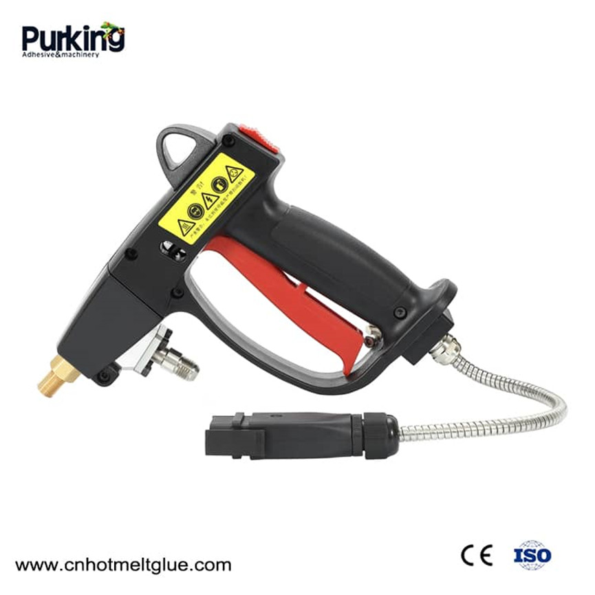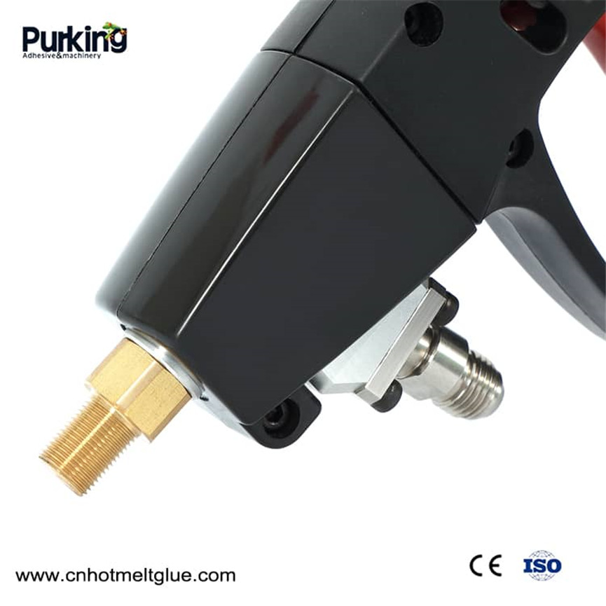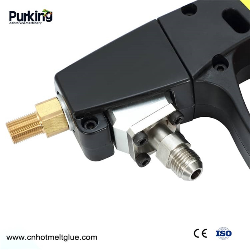 R: A nosa pistola de cola de fusión en quente adopta un deseño de boquilla de fibra preciso e único, estrutura razoable e sinxela, fácil de limpar, control preciso de cola pulverizada, excelente efecto de atomización, tecido verdadeiramente non tecido, cola de pulverización de película perforada sen ósmose inversa.